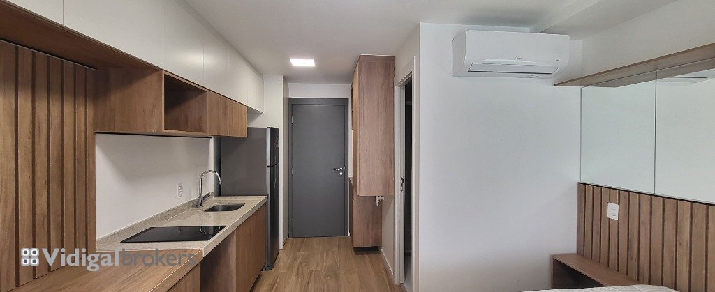Studio com móveis planejados, varanda envidraçada, persianas, cama queen baú ortobom, ar condicionado quente e frio, geladeira electrolux duplex inox 310l, cooktop de indução oster, espelhos no banheiro e quarto, box, instalações completas para lava louça e máquina de lavar. Condomínio oferece piscina, academia, jardim, lavanderia, espaço gourmet e pet place. Localização perfeita, faça tudo à pé, a 300m do metrô Vila Madalena, imóvel vago e pronto para morar!!!